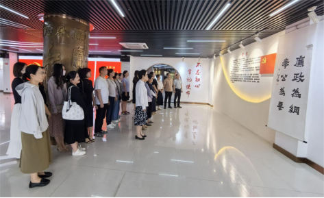 党员们先后参观了廉洁大厅、警示篇、法纪篇、忏悔篇、尚廉篇和决策篇六个教育展区。真实案例警醒全体党员坚守思想底线,提升廉洁意识,自觉学法、懂法、守法、用法,教育党员干部明法纪、知敬畏、存戒惧、守底线,增强反腐倡廉意识,筑牢思想防线、绷紧纪律之弦。最后,党委书记郝景东带领全体党员面对党旗,集体重温入党誓词。
