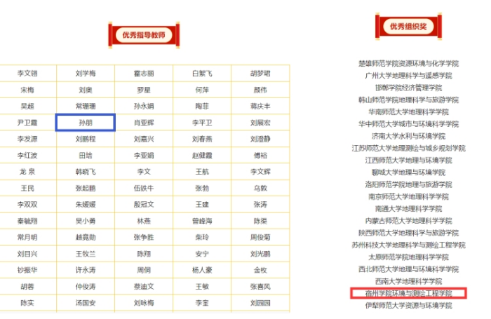 近日,第五届“中教启星杯”地理教学制图大赛落下帷幕,经过激烈角逐,我校学子共斩获特等奖2项、一等奖1项、二等奖2项、三等奖2项的优异成绩,环境与测绘工程学院获评优秀组织奖,孙朋老师获评优秀指导教师,创下我校历年参赛以来最好成绩。