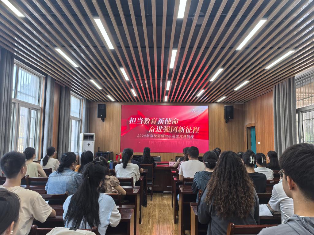 为迎接新中国成立75周年,激发和展示高校广大师生奋进强国新征程的强大力量,音乐学院党委分别于9月4日以及9月6日组织师生党员在会议室观看2024年高校党组织示范微党课第1讲《坚持教育科技人才“三位一体”,奋力谱写中国式现代化宏伟篇章》和第二讲《统筹推进教育科技人才一体化发展,有力支撑中国式现代化建设》。