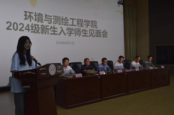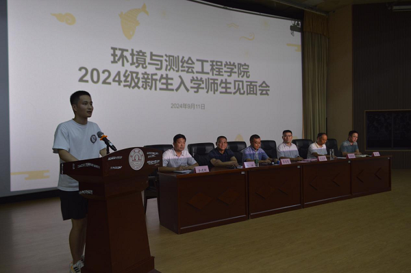 9月11日下午,环境与测绘工程学院2024级新生入学师生见面会在大学生活动中心举行。学院党政领导班子成员、全院教职工及2024级全体新生参加了见面会,会议由院党委书记蔡若愚主持。