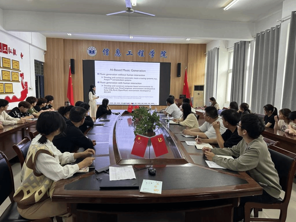 应信息工程学院邀请,日本广岛大学先进理工科学研究科于漪副教授于10月16日在工B315做了题为“多模态音乐生成”的科研报告,报告由信息工程学院党委副书记、院长崔琳主持信息工程学院师生代表一起聆听了此次报告。