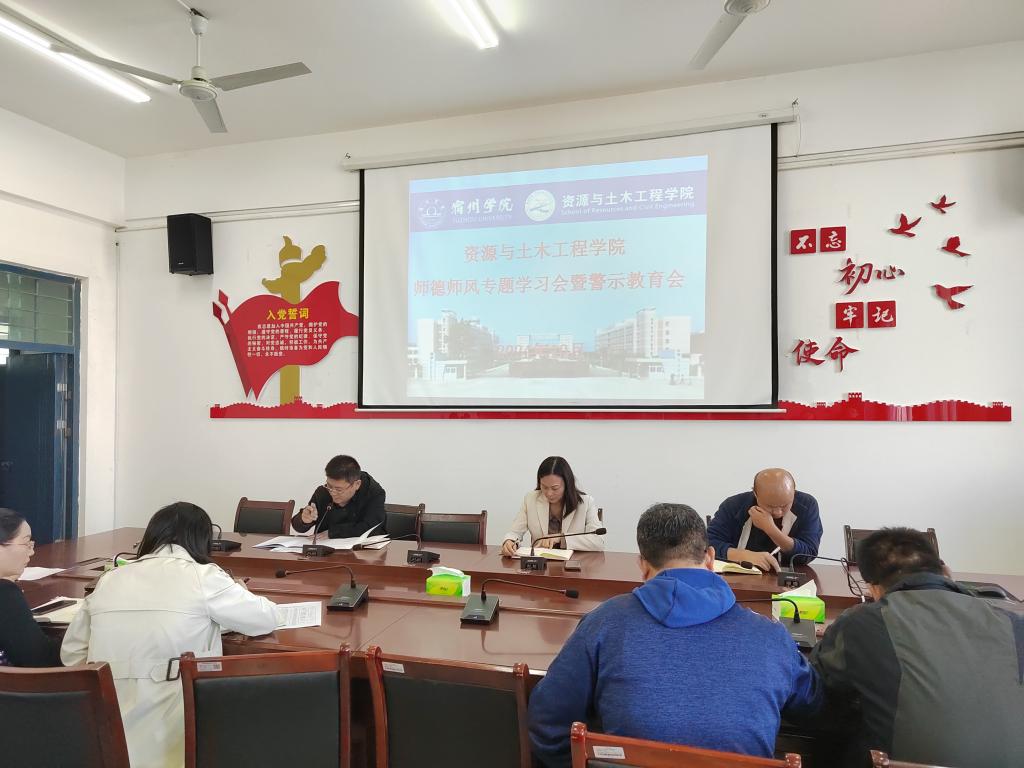 10月30日下午,资源与土木工程学院在工A402会议室召开师德师风专题学习会暨警示教育会。会议由院长方雪梅主持,全体教职工参加。