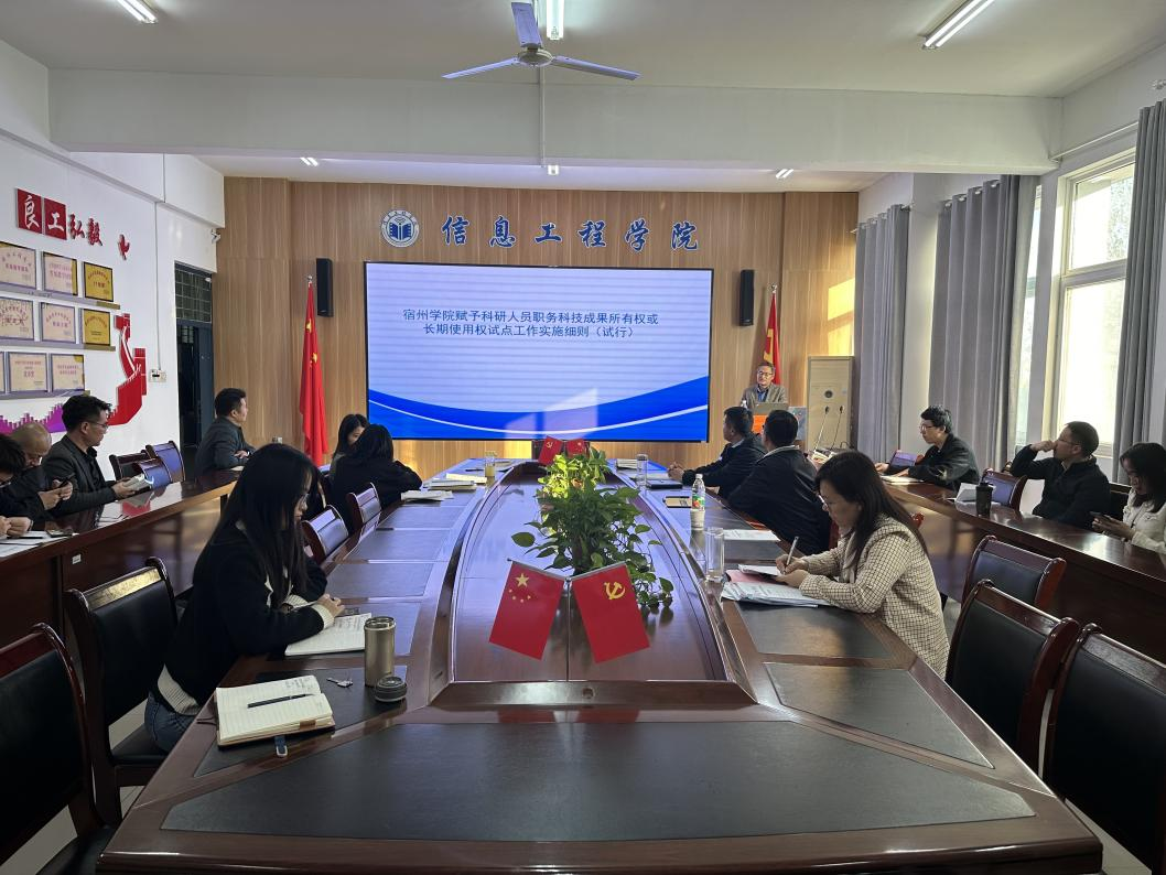 11月6日下午,宿州学院科研处副处长毛强为信息工程学院师生开展科研政策宣讲,旨在帮助师生们更好地理解和把握国家及学校当前的科研政策方向与内容,提升他们的科研能力和热情。信息工程学院全体教职工参加了会议,会议由信息工程学院党委书记余晓永主持。