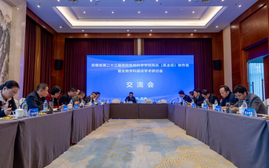8日下午,召开安徽省第二十三届生命科学院院长(系主任)协作会院长圆桌会议。省属高校生命科学学院院长或系主任广开言路、共谋发展,围绕学科建设、人才培养、师资队伍、质量文化等议题展开热烈讨论与交流。会后,张兴桃一行人参观了生物工程学院实验室和2024年安徽省大学生生物标本制作大赛现场。
