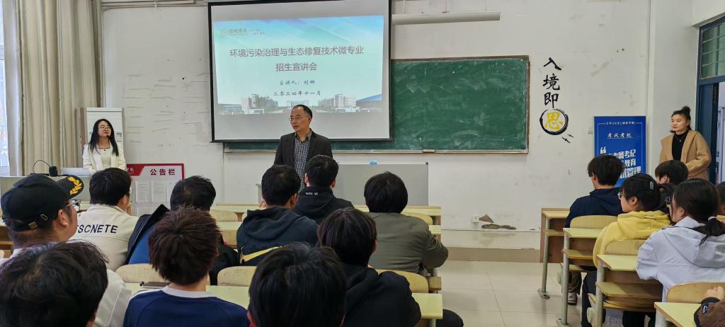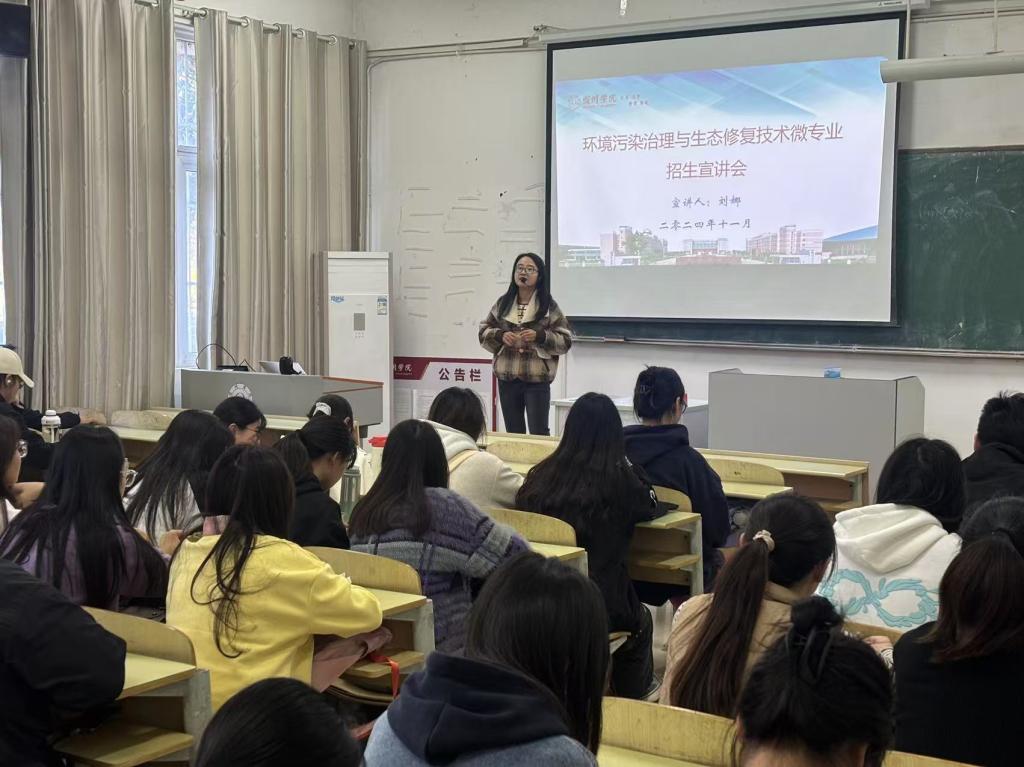 根据《宿州学院微专业建设与管理办法(试行)》(院教字〔2024〕42号)(附件1)文件精神,按照学校2024年微专业招生工作部署,为顺利推进“环境污染治理与生态修复技术”微专业招生工作,2024年11月6日和11月8日下午,环境与测绘工程学院分别开展两场微专业招生宣讲会。参会老师有环测学院教学副院长徐国伟、教务处高莉、微专业负责人刘娜,参会学生来自地理科学、遥感科学与技术、水文与水资源工程等多个本科专业。