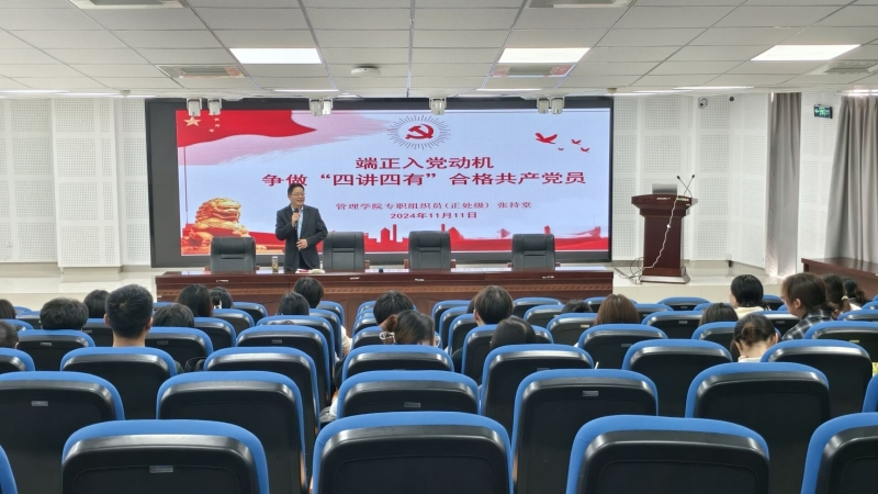 为加强入党积极分子的培养教育,提高入党积极分子的政治素质和理论修养,11月11日中午,管理学院党委在实训楼C103召开第四十五期入党积极分子培训班开班式。管理学院党委副书记、纪委书记张增林为入党积极分子做动员讲话。