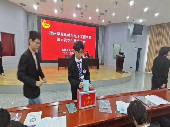 会上,代表们以饱满的政治热情和对学生会工作高度负责的态度,认真听取并审议了上届分团委学生会的工作报告以及提案报告等,公平公正且庄严地行使了自己的民主权利,选举产生了机电学院分团委学生会主席团成员5名、宿州学院第六次学生代表大会代表19名。