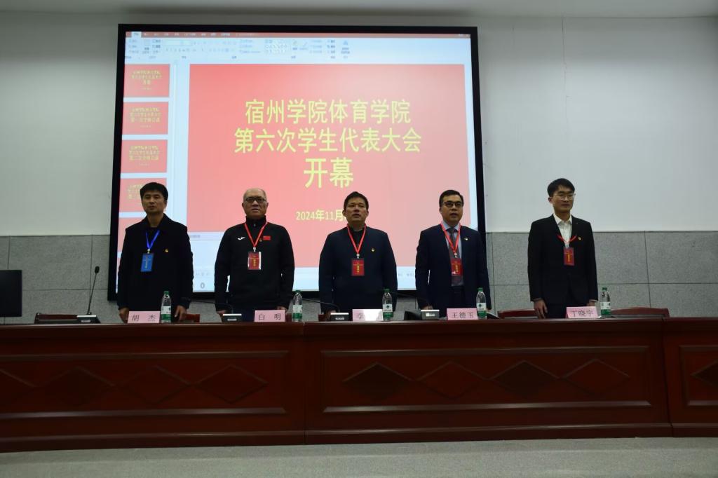 11月24日上午,体育学院召开第六次学生代表大会,体育学院党委书记李高、体育学院院长白明、体育学院党委副书记王德玉、体育学院团委书记胡杰及学代会全体代表参加会议,会议由胡杰主持。