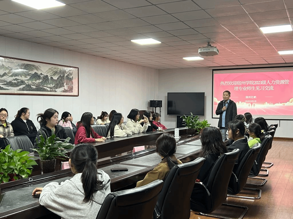 在赴企业实地观摩交流环节,2022级人力资源管理班赴安徽抖嘉互联网科技有限公司和安徽英特丽电子科技有限公司观摩学习,对企业发展历程、主要业务、企业文化和企业人力资源管理工作进行了学习交流。2023级人力资源管理班赴宿州腾讯未来城市创新中心第1创客、万硕集团、宿州亿帆药业有限公司、安徽紫金新材料科技股份有限公司观摩学习,深入了解公司的服务范围、人员结构、人力资源需求与人力资源管理工作等。