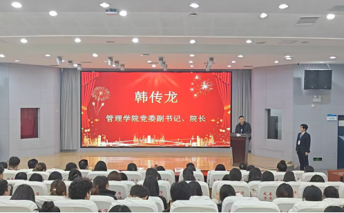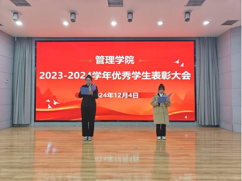 为表彰先进,树立榜样,激励广大学生积极进取、奋发向上,2024年12月4日,管理学院2023-2024学年优秀学生表彰大会在工科楼招聘大厅隆重举行。管理学院党委副书记、院长韩传龙,党委学生工作部副部长徐国庆,管理学院党委副书记张增林,教师代表和学生代表等参加表彰活动。