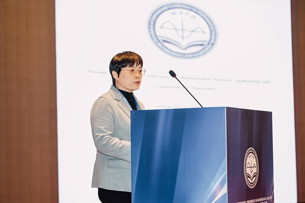 大会主旨报告环节。巴基斯坦真纳大学Tasawar Hayat教授报告了MHD纳米材料模型的开发及其应用进展;泰国国王科技大学固定点实验室主任Poom Kuman教授作了关于解决非线性问题的优化算法及其在成像科学中的应用报告;苏州大学何吉欢教授、兰州交通大学周文学教授分别介绍了自然界中的双尺度分形理论和分数阶微分方程边值解的存在性等数学前沿内容。主题演讲嘉宾的创新性研究思路和方法引发在场学者的热烈讨论。
