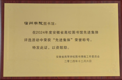12月6日,由安徽省高等学校图书情报工作委员会主办的2024年安徽省高校图书馆馆长年会在芜湖召开。我校图书馆在百余所参评高校图书馆中脱颖而出,荣获2024年度安徽省高校图书馆“先进集体”荣誉称号。