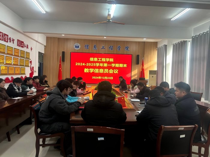 为了进一步完善教学质量保障体系,充分发挥学生参与教学管理的主体作用,2024年12月23日中午,信息工程学院在工B315会议室召开了2024-2025学年第一学期期末教学信息员会议。信息工程学院党委副书记、院长崔琳,党委副书记、纪委书记吴孝银,教研室主任、副主任,学院教学督导组成员以及全体教学信息员参加了会议。会议由教学副院长潘正高主持。