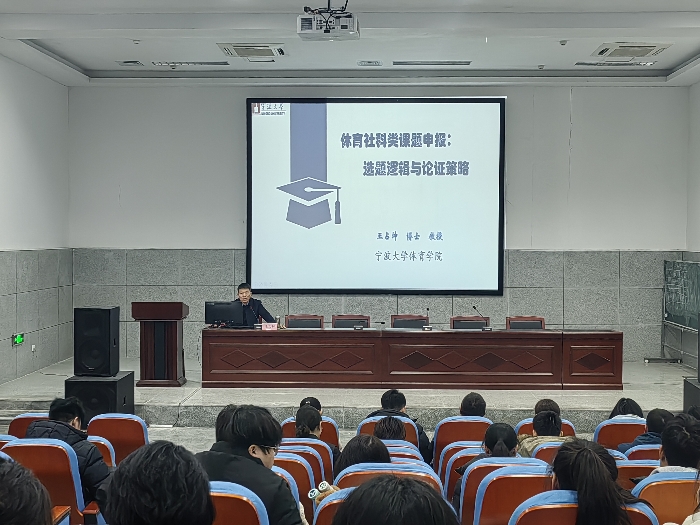 2024年12月25日下午,体育学院邀请宁波大学王占坤教授在体育学院学术报告厅作关于体育社科类课题申报的专题讲座。本次讲座聚焦体育社科类课题的选题逻辑与论证策略,体育学院党委副书记、院长白明,党委副书记王德玉,副院长陈芳芳和部分教师及学生聆听了报告。