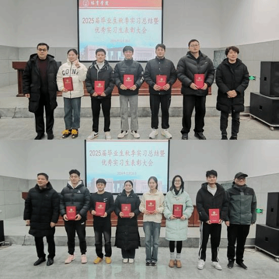 会议最后,学院领导班子为优秀实习生颁发证书并合影留念。