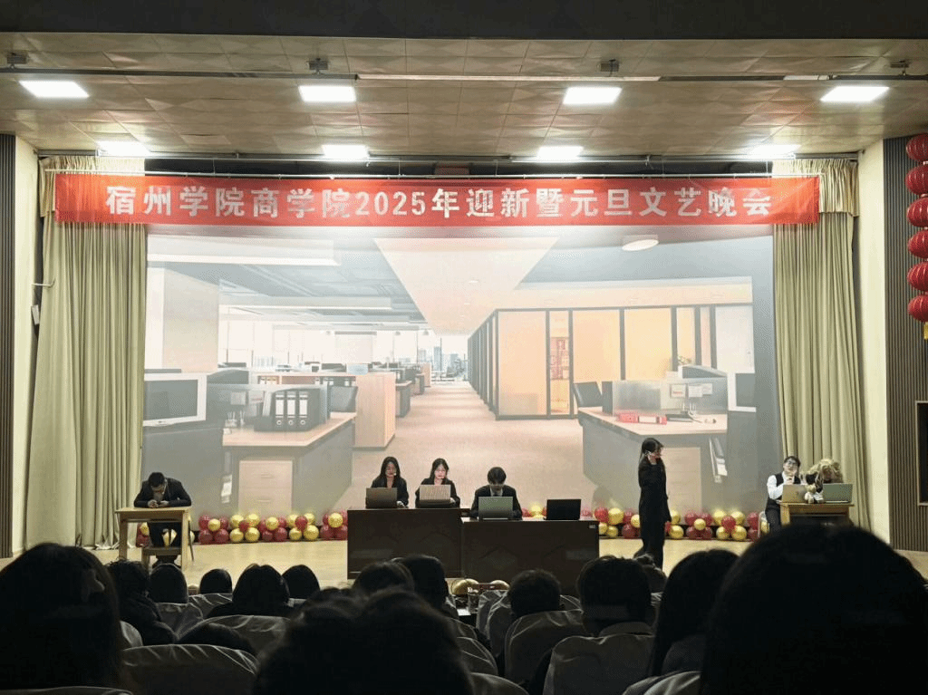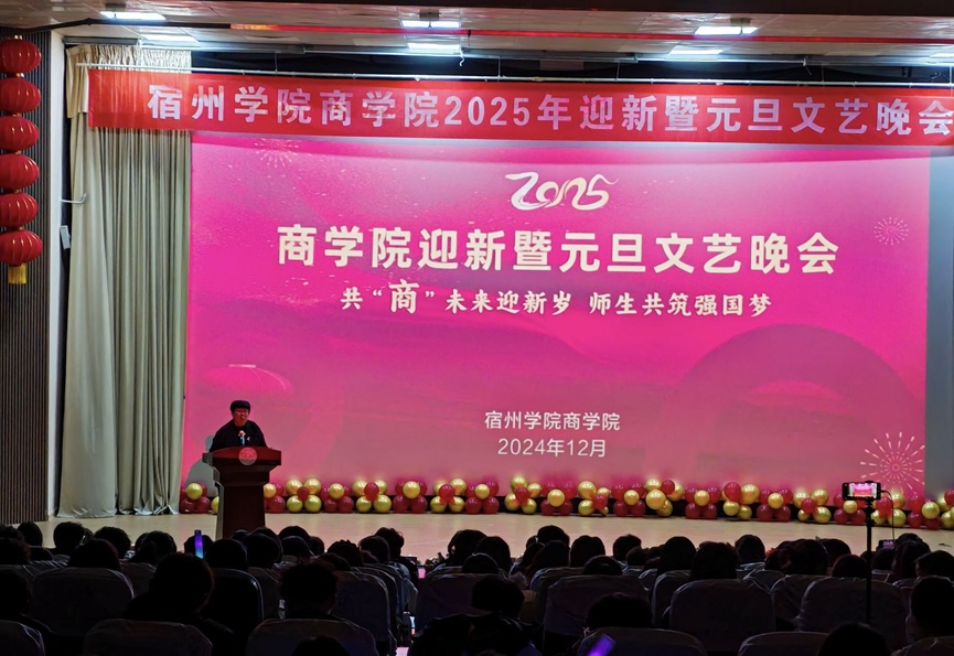 旧岁将辞,新年共启。2024年12月30日晚,商学院在大学生活动中心举办2025年“共‘商’未来迎新岁 师生共筑强国梦”主题迎新暨元旦文艺晚会。商学院党委书记王淑霞,党委副书记、院长刘红军,党委副书记、纪委书记张锐锐,副院长宁青青、张冰秋,学院全体辅导员及教师代表和全体2024级新生齐聚一堂,共启新年。