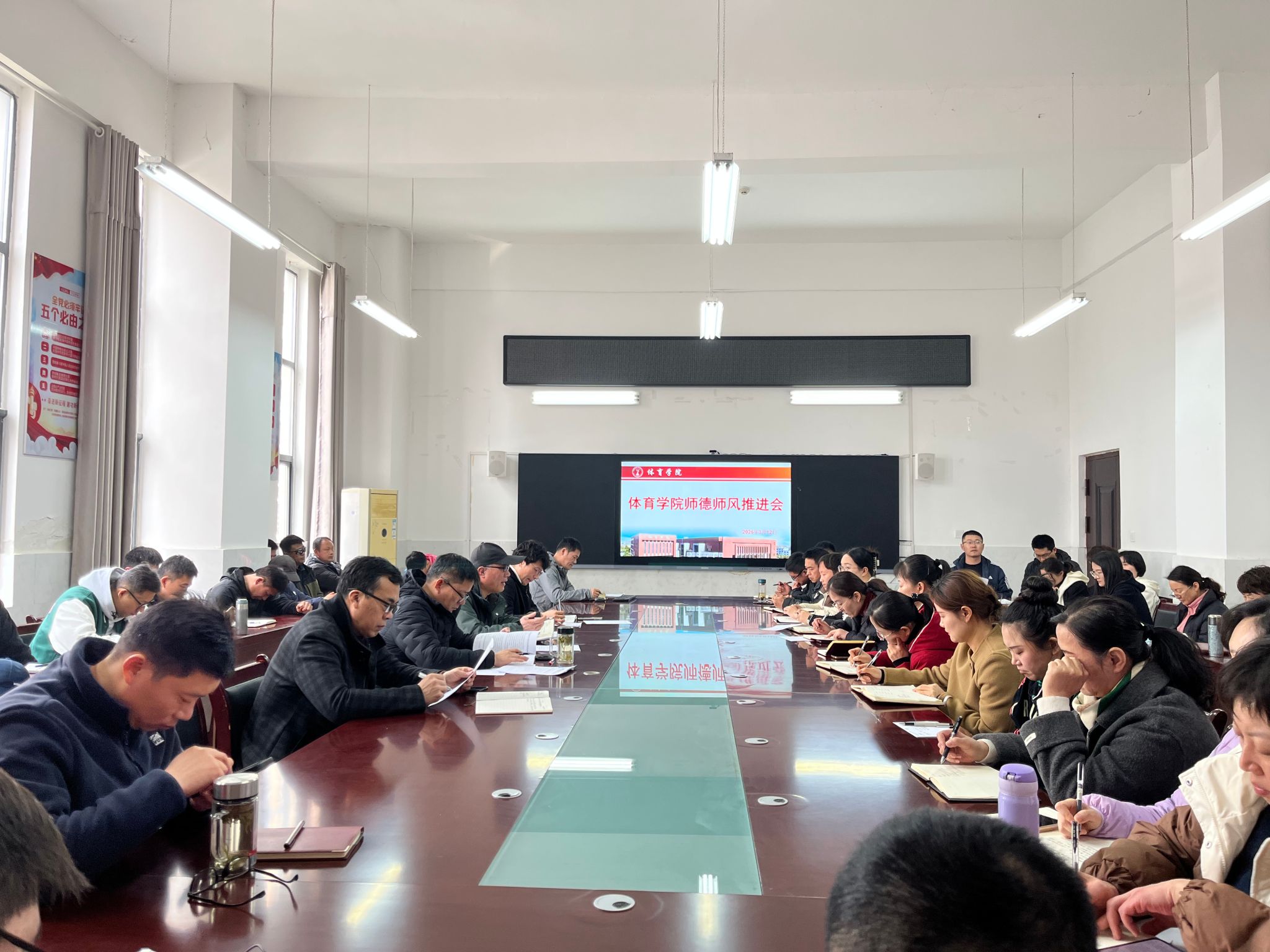 3月12日,体育学院党委组织召开师德师风建设工作会议,全体教职工参加,党委书记李高主持会议。