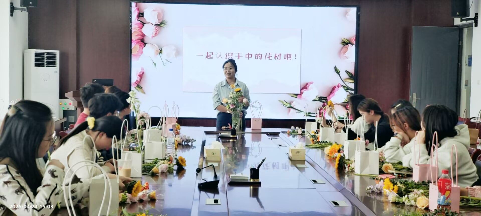 实践环节,同学们充分发挥创意,将各种花材巧妙组合,通过花艺创作,将内心的情感转化为具体的作品,从而获得情感的释放与心灵的成长。