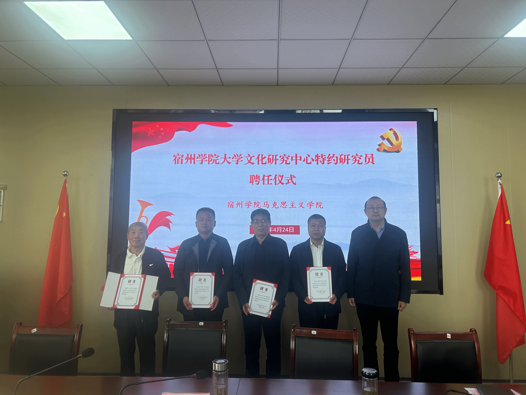 贺暾、尹杰、武正彪、盛怀峰特聘为宿州学院大学文化研究中心特约研究员,凌峰逐一颁发了聘书。