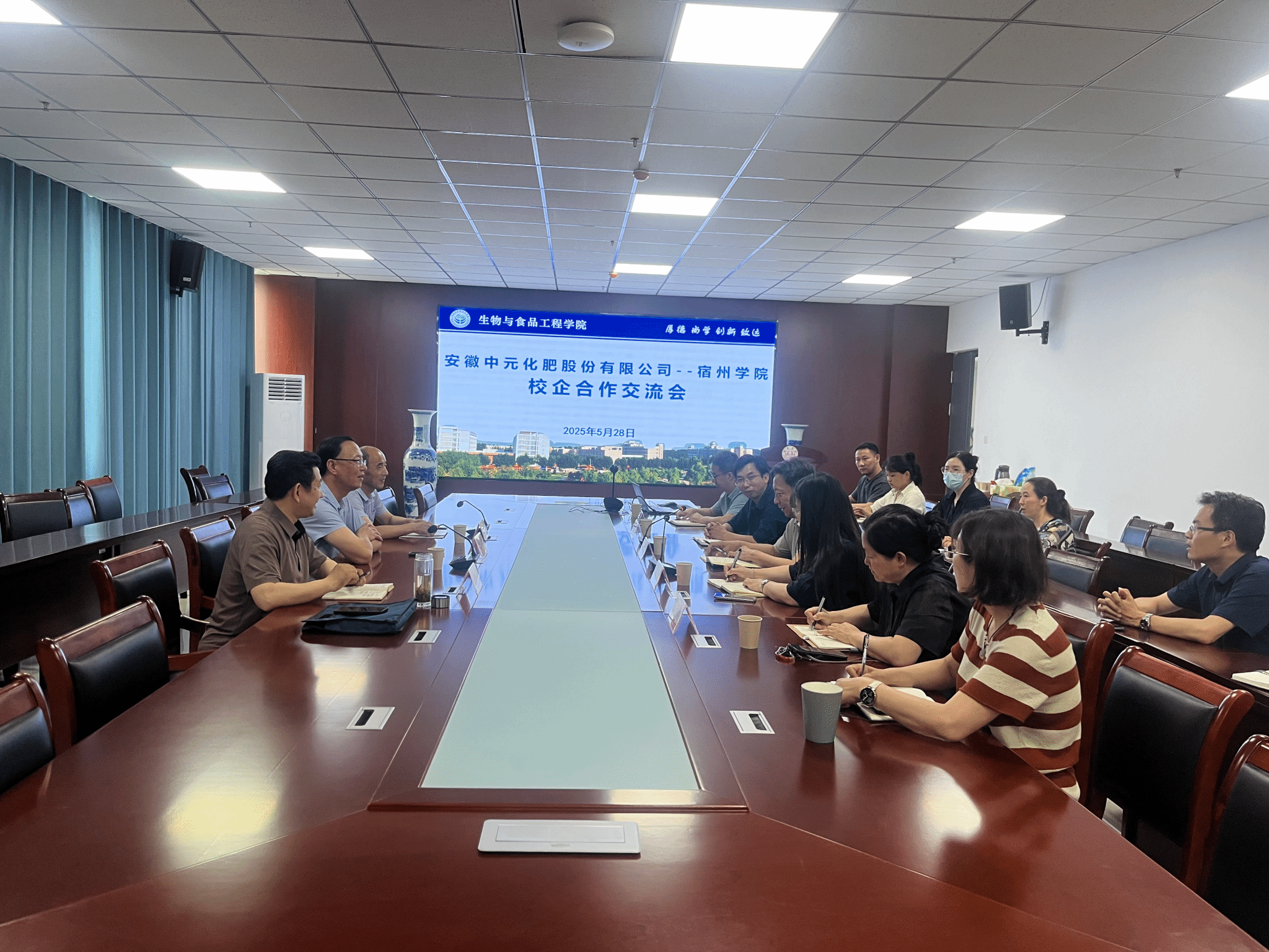5月28日下午,安徽中元化肥股份有限公司总经理刘涛一行来校开展校企合作对接。化工学院党委书记史洪伟、院长卓馨、生工学院院长张兴桃及农学相关研究方向的博士教师参加交流会。