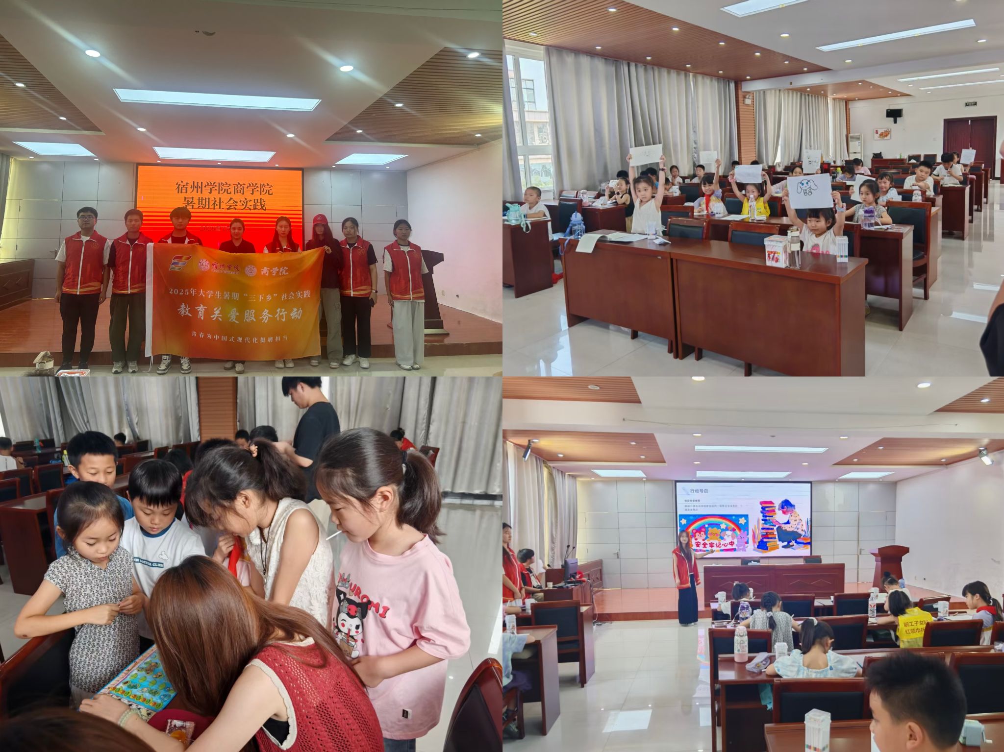 依托砀山县总工会“七彩小屋”,商学院“梨娃成长”教育关爱团队为30余名砀山儿童开设“我是小画家”、“作业加油站”、“安全小课堂”等课程,为“梨娃”们精心准备了水彩笔、绘画本等小礼物。团队成员的爱心热情和孩子们的天真烂漫在教室里交汇,让酷暑的假期变得绚丽多彩!