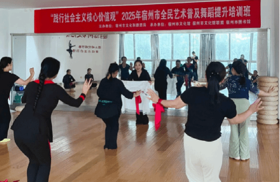 9月18日至9月20日,由宿州市文化和旅游局主办的“践行社会主义核心价值观”2025年宿州市全民艺术普及舞蹈培训班在宿州市文化艺术中心举行。宿州学院音乐学院舞蹈专业教师李小娜、李东旭、刘宁、王昭伟,为全市各区县的舞蹈同行及基层文化工作者带来了专业的舞蹈教学。