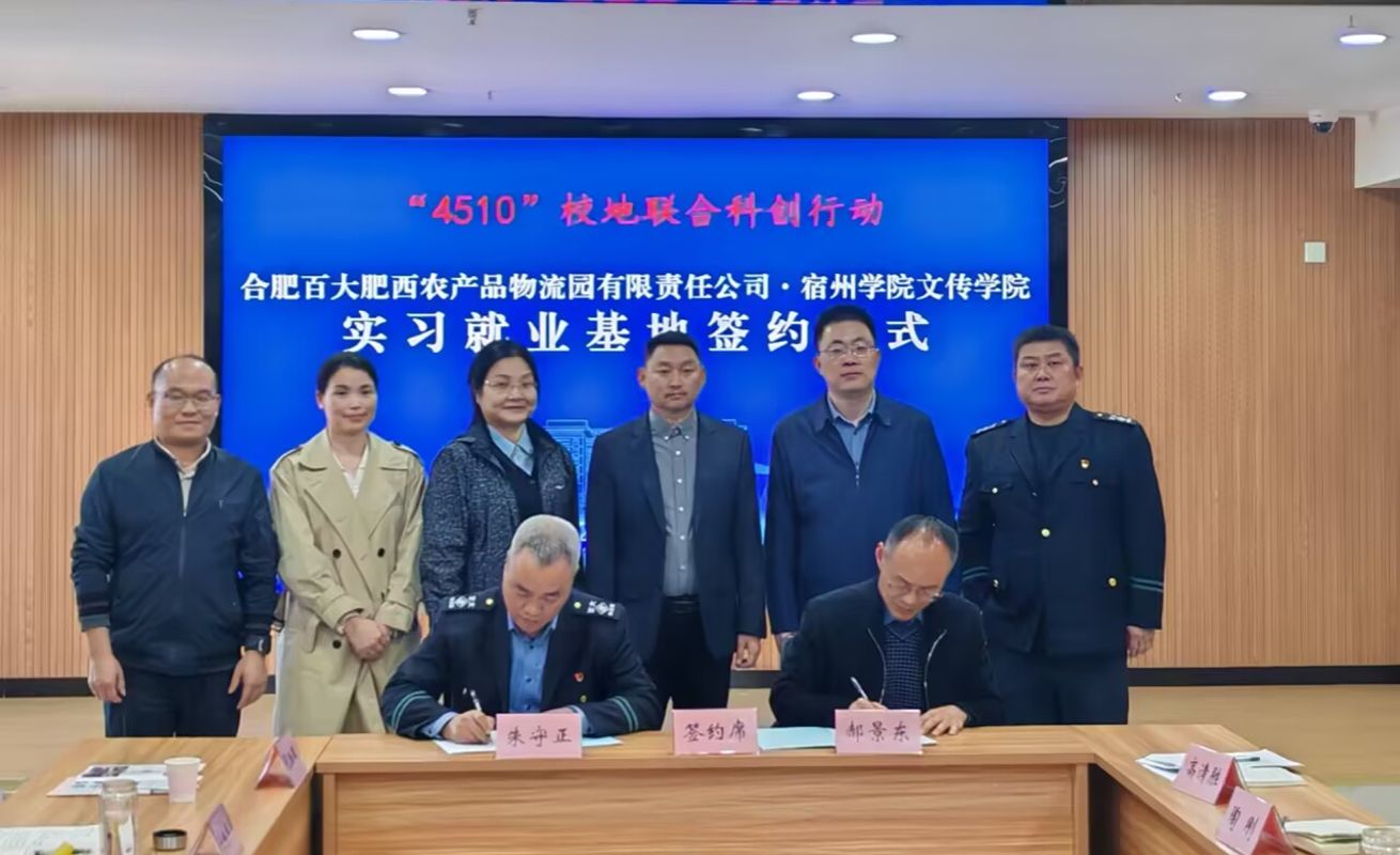 11月13日,文学与传媒学院党委书记郝景东,党委副书记、院长李月云,团委书记王磊及辅导员张珈珲一行4人,赴合肥百大肥西农产品物流园有限责任公司和安徽恋爱婚姻家庭杂志社开启访企拓岗行动并现场签订实习就业基地协议。