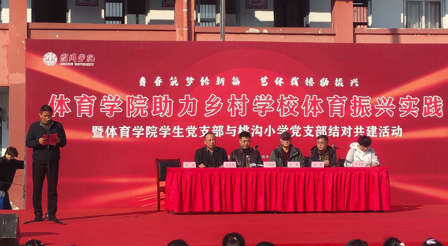 签约仪式后,进行了捐赠仪式和文艺表演。宿州市埇桥教师进修学校校长丁四海,学院党委副书记、院长白明分别致辞,体育学院向桃沟镇中心校捐赠了中小学相关体育用品。桃沟镇中心校小学部、初中部共800余名观众观看了体育学院准备的健美操、啦啦操、排舞、街舞、舞龙舞狮、武术、体育舞蹈、现代舞等节目。