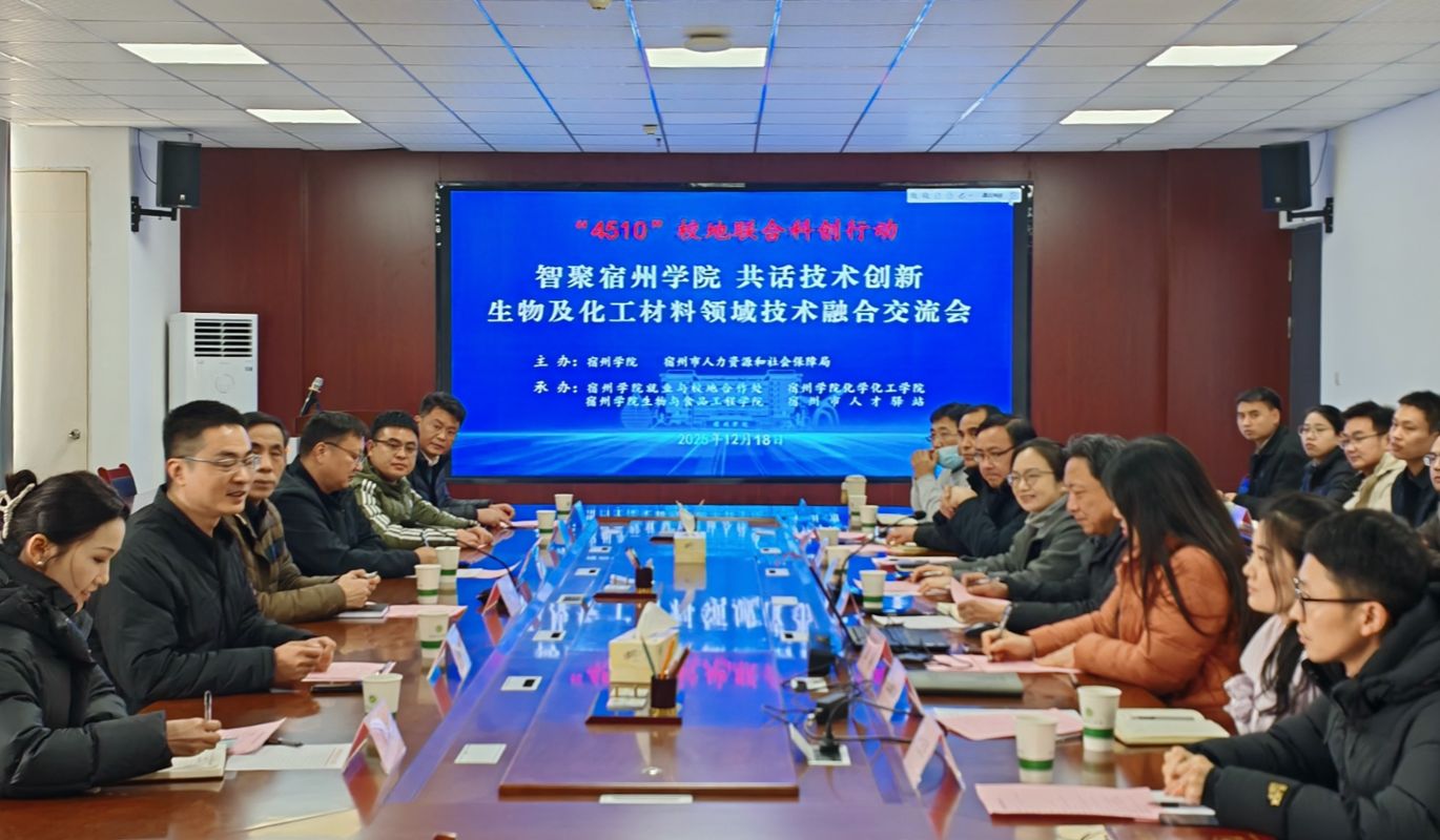 12月18日上午,我校举办“智聚宿州学院 共话技术创新”生物与化工材料领域技术融合交流会。安徽理工大学精准医学创新研究院院长、公共卫生学院学术院长王文新教授,宿州市人才驿站,安徽雪龙新材料(集团)有限公司,安徽新秀化学股份有限公司,海康威视淮宿分公司,安徽永圆电子科技有限公司等企事业单位有关负责人出席会议。化学化工学院党委副书记、院长卓馨主持会议。