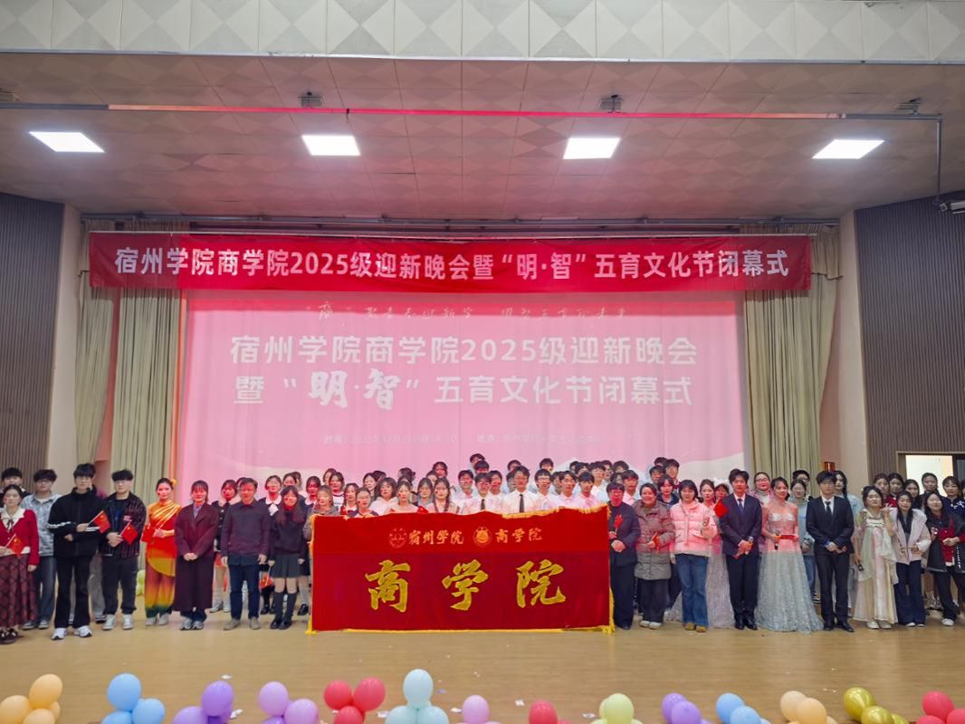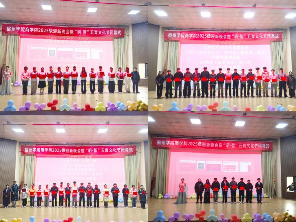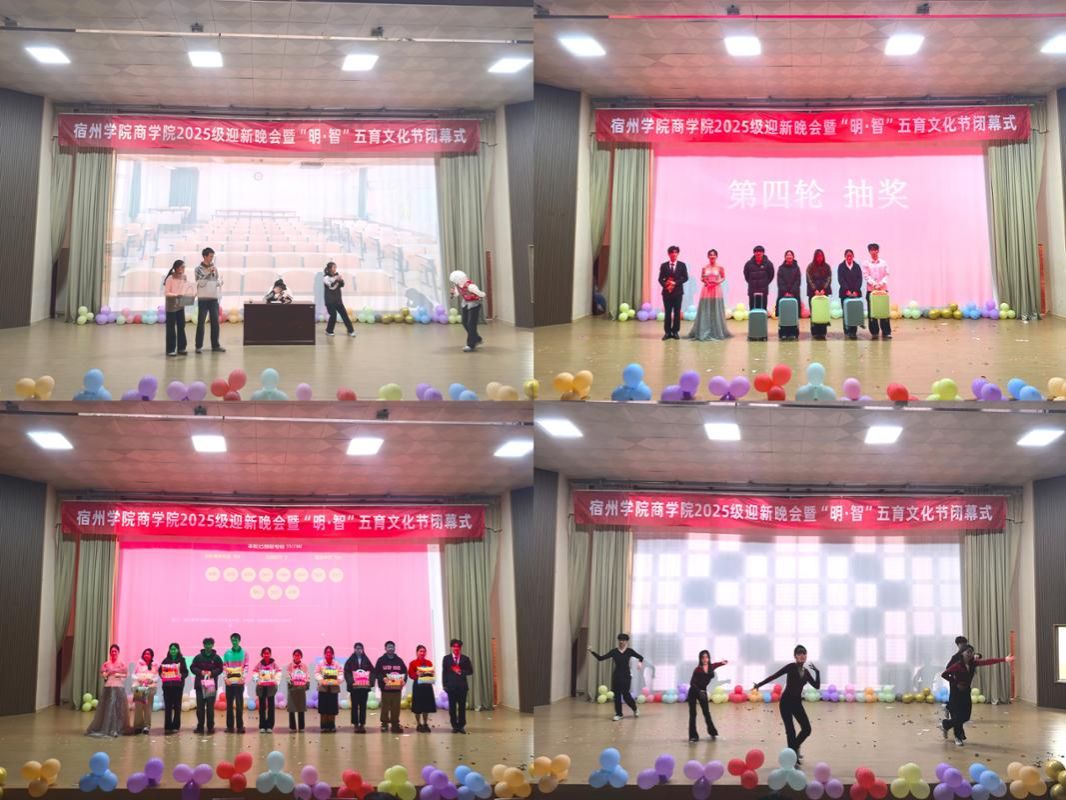 12月21日晚,商学院2025级迎新晚会暨“明·智”五育文化节闭幕式在大学生活动中心圆满落幕。商学院党政领导班子、全体辅导员、教师代表、优秀学生代表及2025级新生参加活动。