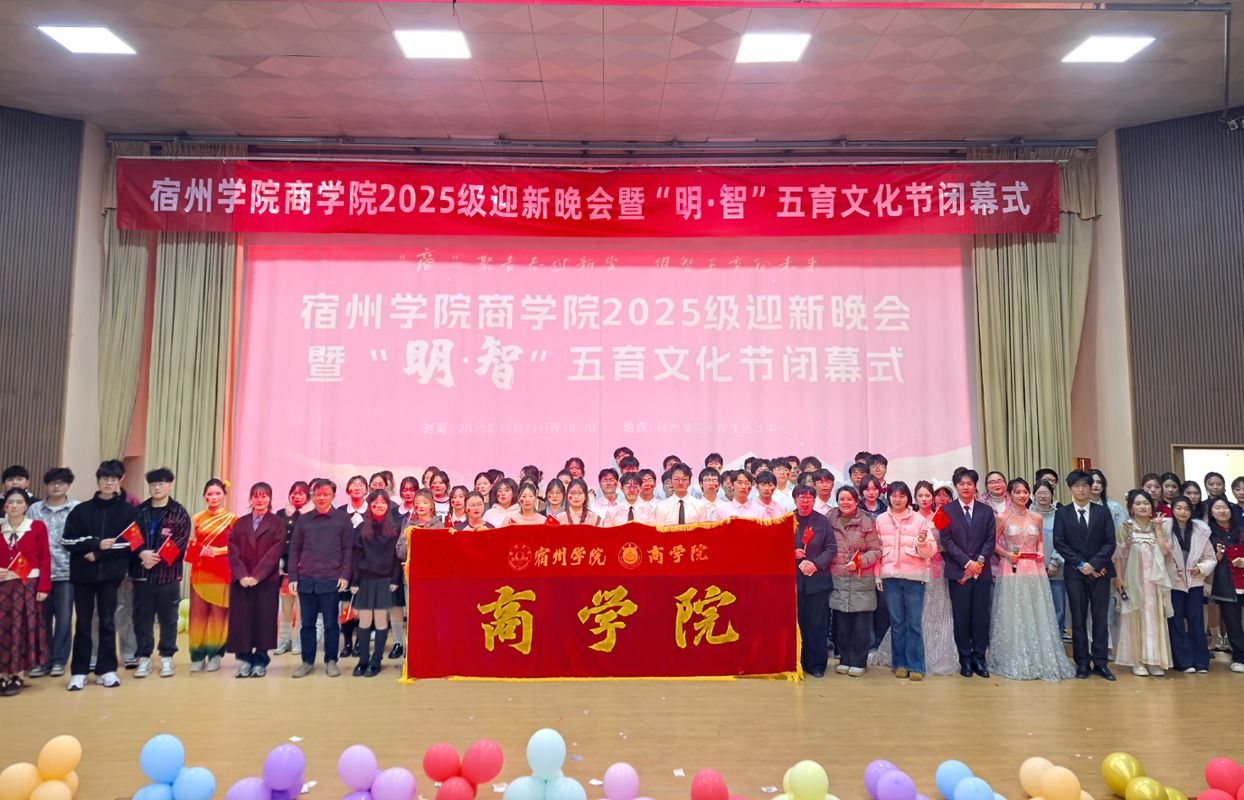 12月21日晚,商学院2025级迎新晚会暨“明·智”五育文化节闭幕式在大学生活动中心圆满落幕。商学院领导班子成员、全体辅导员、教师代表、优秀学生代表及2025级新生参加活动。