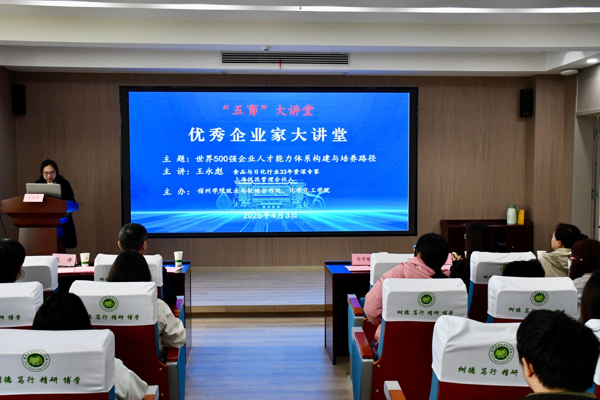 4月3日,就业与校地合作处与化学化工学院联合开展优秀企业家大讲堂活动。特别邀请食品与日化行业33年资深专家、上海悦孜管理合伙人王永彪担任主讲人。我校近80名师生代表到场聆听。