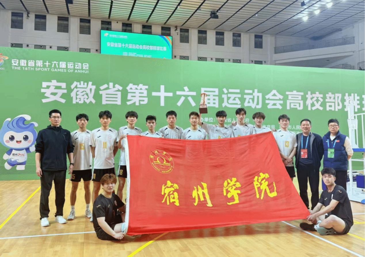 3月27日至4月3日,安徽省第十六届运动会高校部排球比赛在萧县体育馆举行。由体育学院2024级休闲体育专业石双同学担任队长的宿州学院男子排球队不畏强手、顽强拼搏,力克淮北师范大学、阜阳师范大学等传统强队,最终斩获专业组第五名的优异成绩。来自全省38所高校近1100名排球运动员参赛。