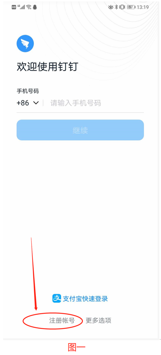 二、安装完成后,初次使用点击登录界面下方“注册账号”,如图一,使用手机号码注册并登录。