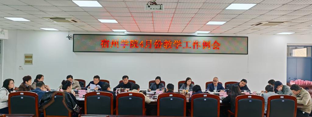 4月7日下午,宿州学院2024年4月份教学工作例会在逸夫楼第一会议室召开,各二级学院院长,发展规划处、招生就业处、国有资产与设备管理处、教务处相关负责人参加会议,会议由院党委委员、副院长王红艳主持。