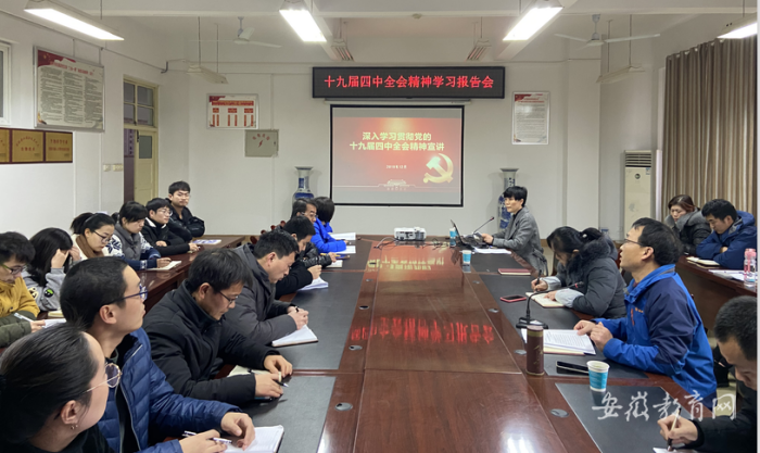 学习宣传和贯彻落实好党的十九届四中全会精神,是当前和今后一个时期全院上下的重大政治任务。宿州学院将在前段学习宣传贯彻的基础上,以此次宣讲为契机,进一步深入、全面把握党的十九届四中全会的丰富内涵和精神实质,把学习宣传贯彻党的十九届四中全会精神各项工作引向深入,着力推动全会精神深学深悟,确保全会精神落地生根。(特约通讯员:张苗)
