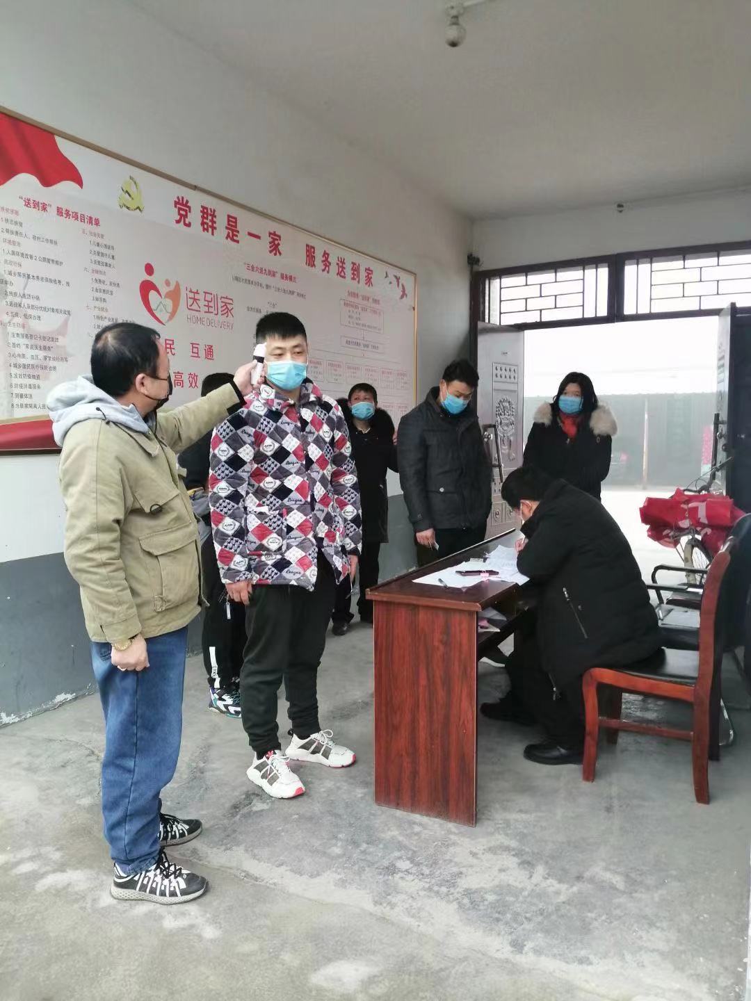 驻村工作队员们,每日在村委会,测量体温、登记前来办理业务的村民,协助村上做宣传、忙消毒、搞排查,一刻也不停歇。