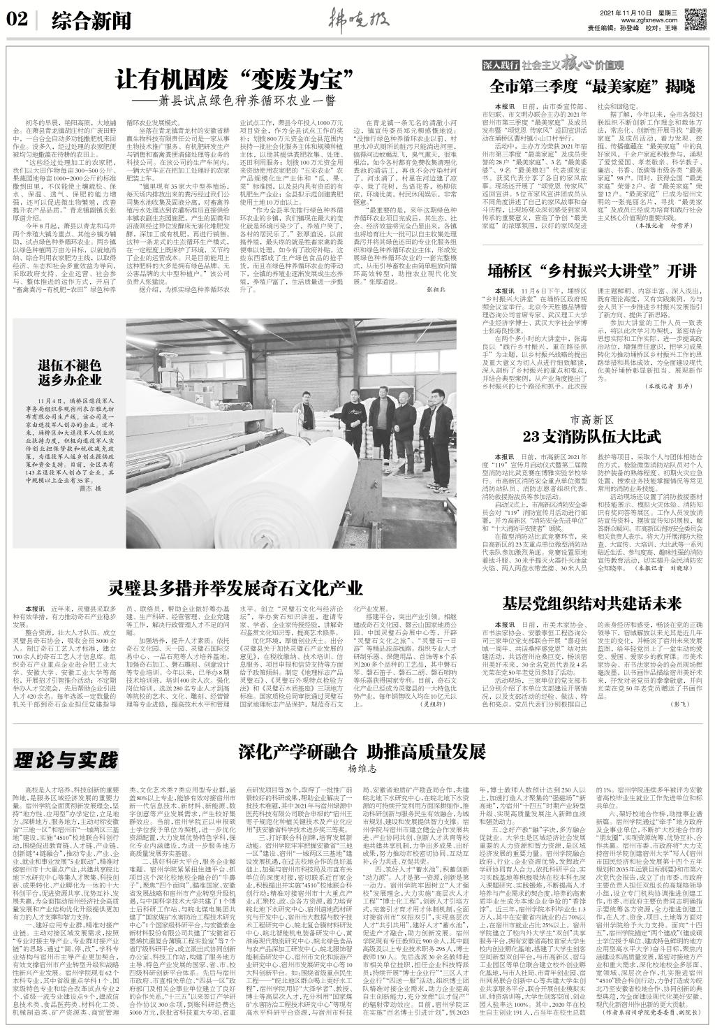 11月10日,《拂晓报》第2版刊发我校党委委员、副校长杨维志研究文章《深化产学研融合助推高质量发展》,文章介绍了我校推进“4510”校地联合科创行动的举措、做法。