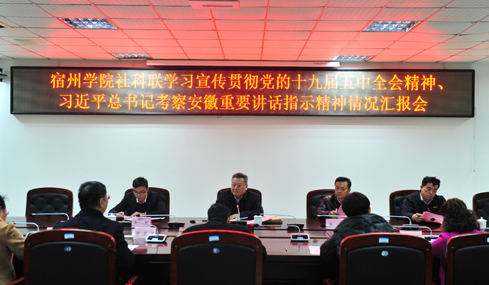 汪刘送强调宿州学院有着优良的师德和学风,当代知识分子学习的楷模孟二冬就是我校的优秀学子、优秀教师。我校人文社会科学基础和底蕴较为扎实,在大运河文化研究、大学文化、城乡一体化建设等研究方面优势和特色明显,发展潜力较大,具有承担安徽省一些重大问题研究的能力。下一步我校继续深入学习宣传贯彻党的十九届五中全会精神、习近平总书记考察安徽重要讲话指示精神和安徽省社科联八代会精神,加强宿州学院社科联的组织和机制建设,密切与省、市社科联的沟通交流,深化我校哲学社会科学内涵建设,拓展学科的交叉融合,聚焦现实问题,加大智库建设,持续提升服务地方经济社会发展的能力。
