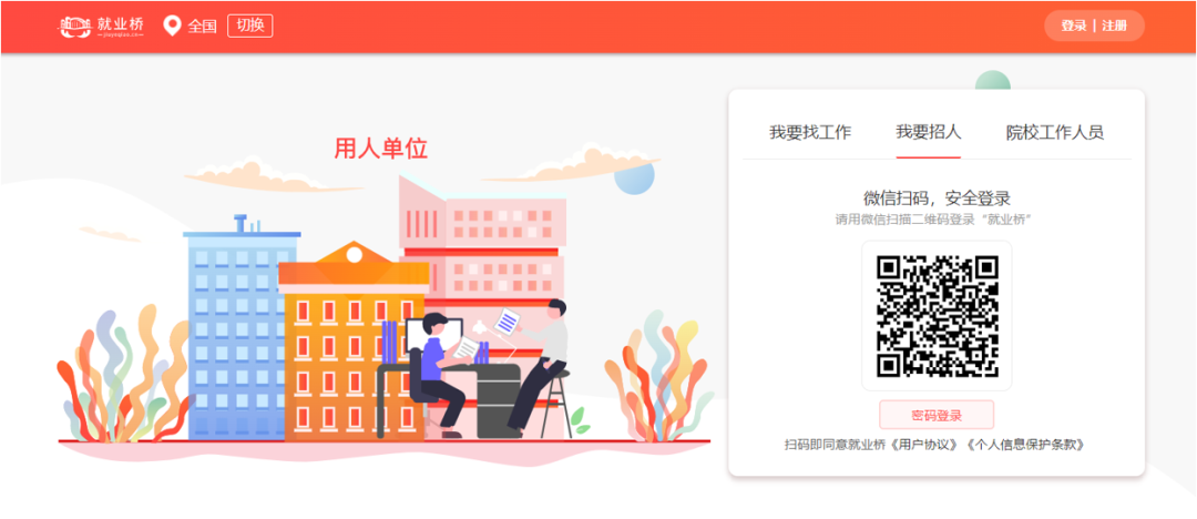 2、选择【我要招人】,微信扫码或输入账号密码登录