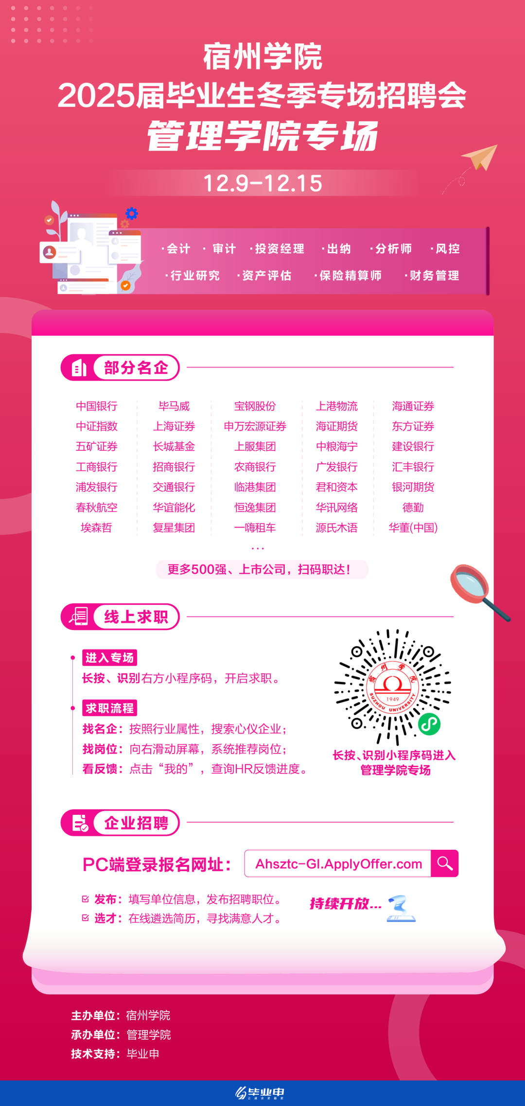 管理学院专场 | 宿州学院2025届毕业生冬季专场招聘会