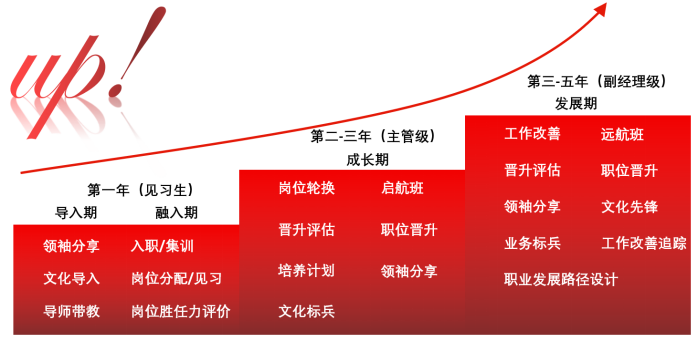 多梯次培养:亮剑班、启航班、远航班、领航班、领袖训练营;