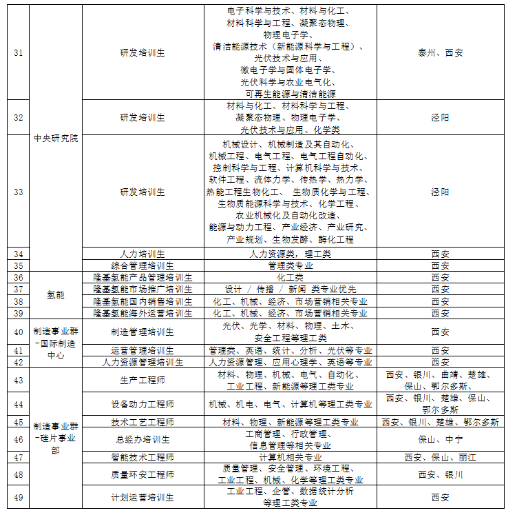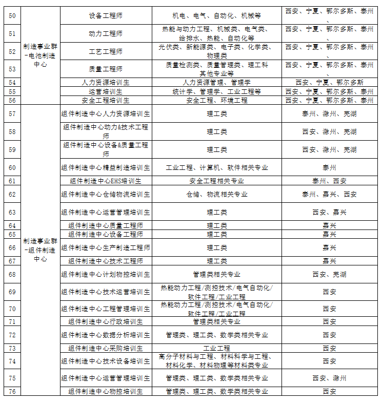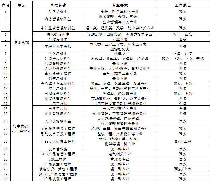 研发类、销售市场类、制造技术类、智能IT类、职能支持类、电站技术类