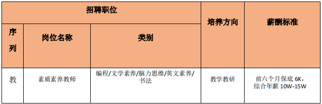 【教师岗】一般是周一、周二(休息) ,周三-周五备课教研9:00-18:00(晚上如果安排了课程也需要上课),周六、周日:上课