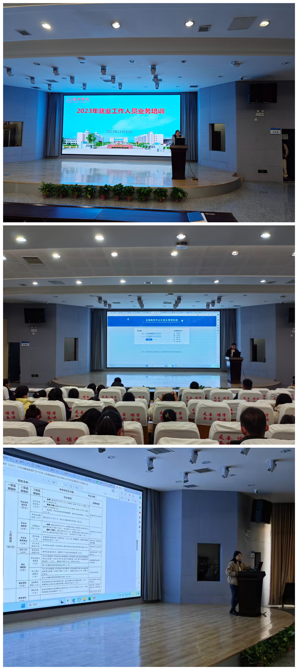 会议针对2024届毕业生近期就业管理、就业市场建设、就业指导等专项工作进行了系统培训。首先,就业指导中心杨靖昌老师介绍了就业管理相关工作并现场演示了省就业系统及国家就业系统中就业管理相关子系统的操作方法,对就业信息录入要点、网络签约、就业证明材料上传、困难群体信息维护、国家系统辅导员平台操作进行了详细介绍。随后,就业指导中心赵丽莎老师介绍了目前就业重点工作,包括省级求职创业补贴申报、困难群体帮扶台账的建立、实习就业基地数据库的更新等。