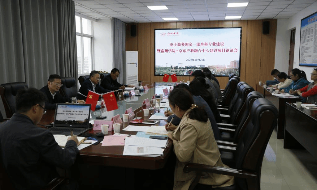 10月25日下午,宿州学院电子商务国家级一流本科专业建设研讨会暨宿州学院·京东产教融合中心建设项目论证会在逸夫楼504会议室召开。院党委副书记、院长李福华,党委委员、副院长李亮,党委委员、副院长张英彦,教务处处长王红艳、人事处处长刘文波、发展规划处处长方雪梅、财务处处长齐观彬、科研处副处长毛强,商学院党...