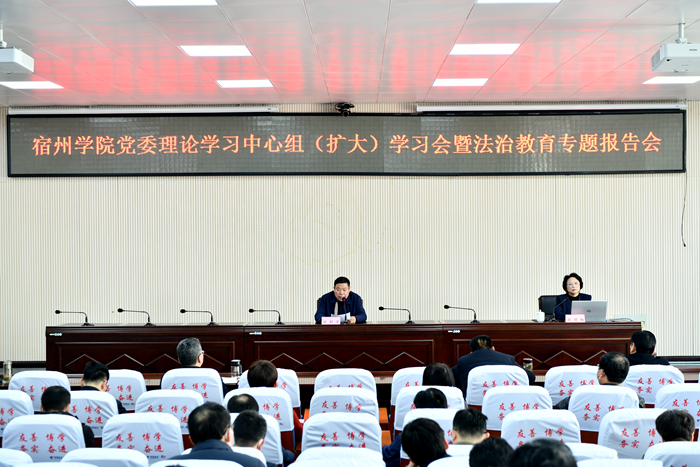 为深入学习贯彻党的二十大精神,把学习贯彻习近平新时代中国特色社会主义思想特别是习近平法治思想不断引向深入,进一步弘扬社会主义法治精神,引导全体师生做社会主义法治的忠实崇尚者、自觉遵守者、坚定捍卫者,3月3日下午,宿州学院党委理论学习中心组(扩大)学习会暨法治教育专题报告会在逸夫楼第二会议室举行。省...