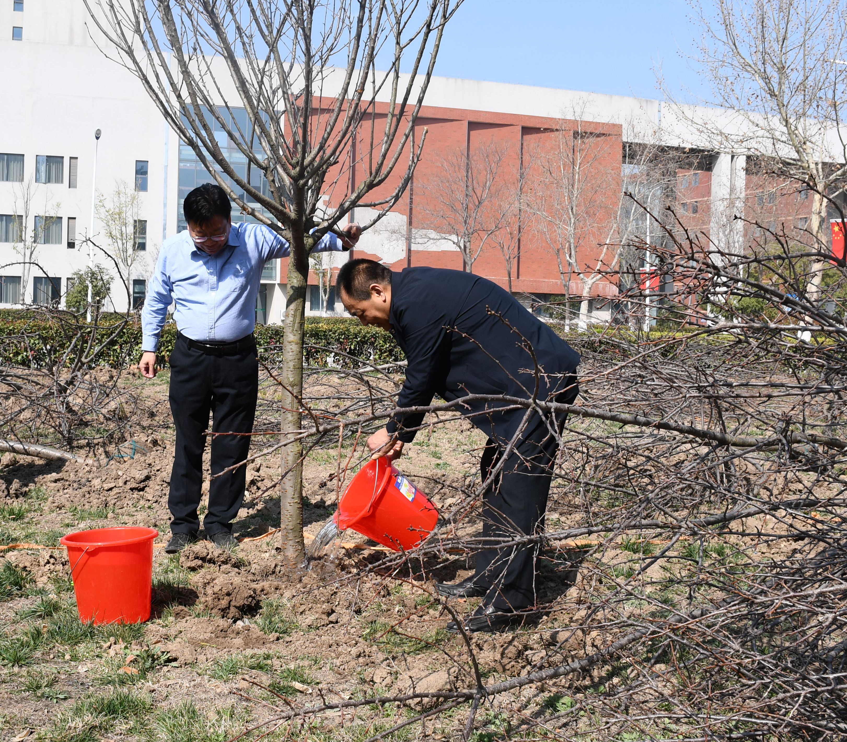 3月10日上午,在我国第45个植树节来临之际,党委委员、副院长李亮、杨维志等院领导与各二级学院党政主要负责人、各单位主要责任人一起在教育园区校区参加义务植树活动。活动中,大家互相配合,有的挥锹培土,有的踩实土壤,有的扶住树苗,衔接有序、配合默契,齐心协力为树“安家”。经过大家共同努力,一株株新栽种的樱...