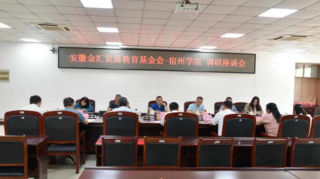 6月7日上午,安徽省金汇发展教育基金会奖助学金项目调研座谈会在逸夫楼第一会议室举行。金汇发展教育基金会理事长王进、秘书长王刚、理事黄世芳,中国人民银行宿州市中心支行行长张超、宣传群工部副部长徐晓星,我院党委书记汪刘送,党委副书记、院长李福华,党委委员、纪委书记,监察专员王俊,办公室主任岳尧、党委...