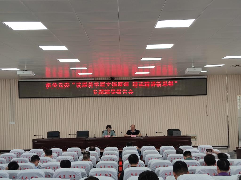 为进一步推进主题教育走深走实,6月7日下午,机关党委在逸夫楼第二会议室召开主题教育工作推进会暨专题辅导报告会。会议由党委组织部部长、机关党委书记陈啸吟主持,机关全体人员参加会议。会上,邀请马克思主义学院李玉才教授作“读原著学原文悟原理 精读精讲新思想”专题辅导报告。李玉才教授就《习近平著作选读》(第...